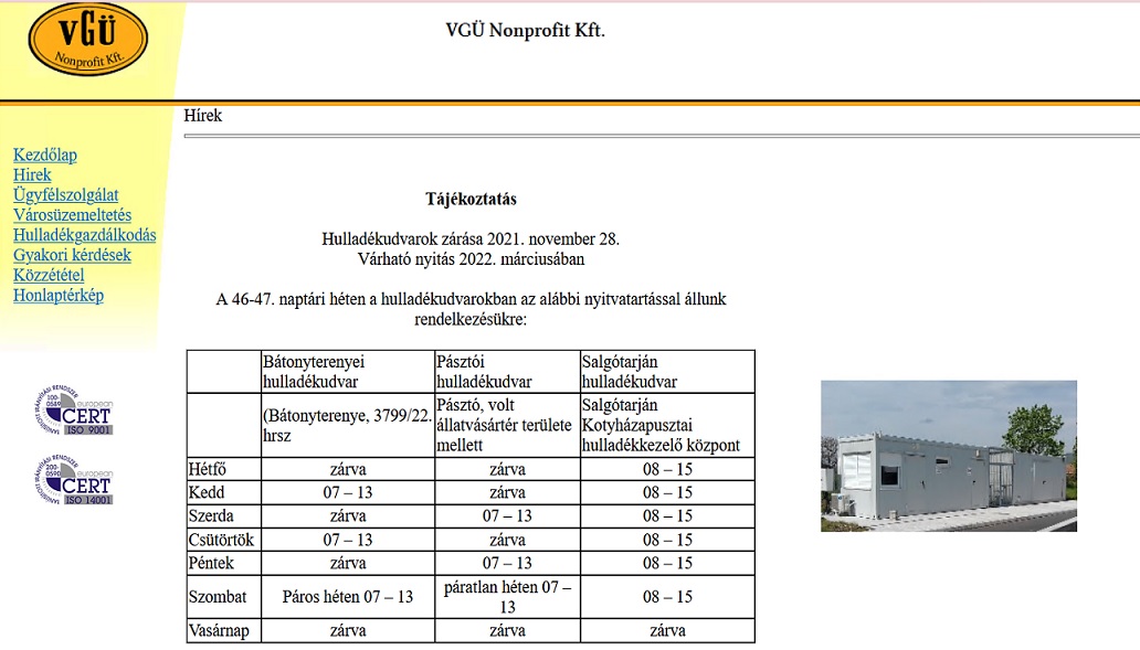 Hulladékudvar zárás - VGÜ Nonprofit Kft